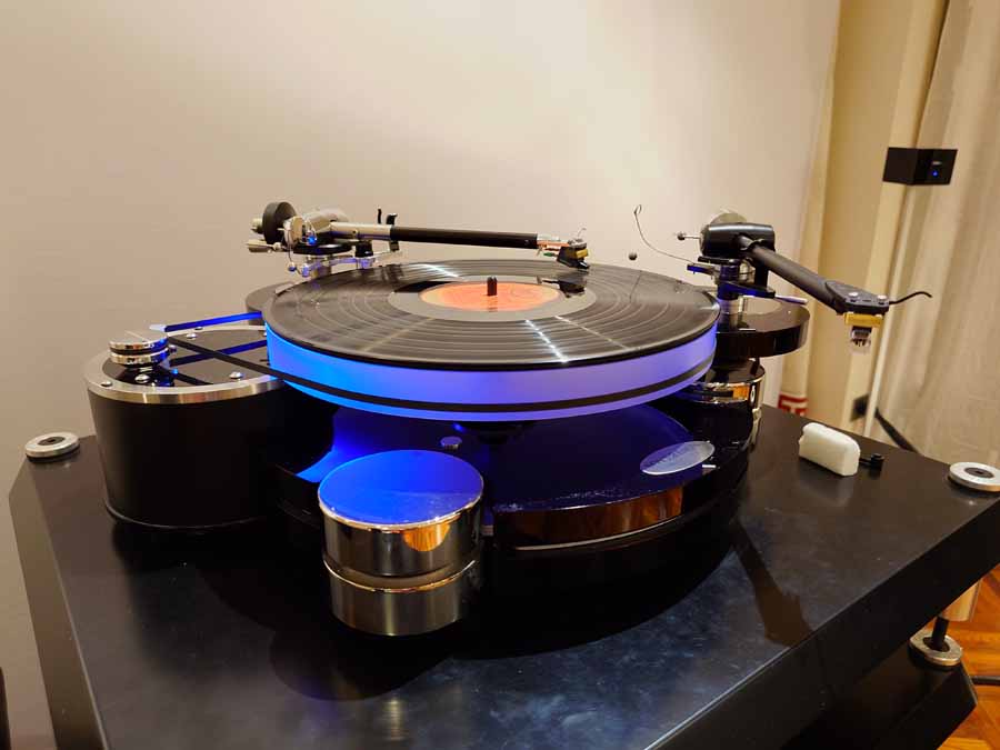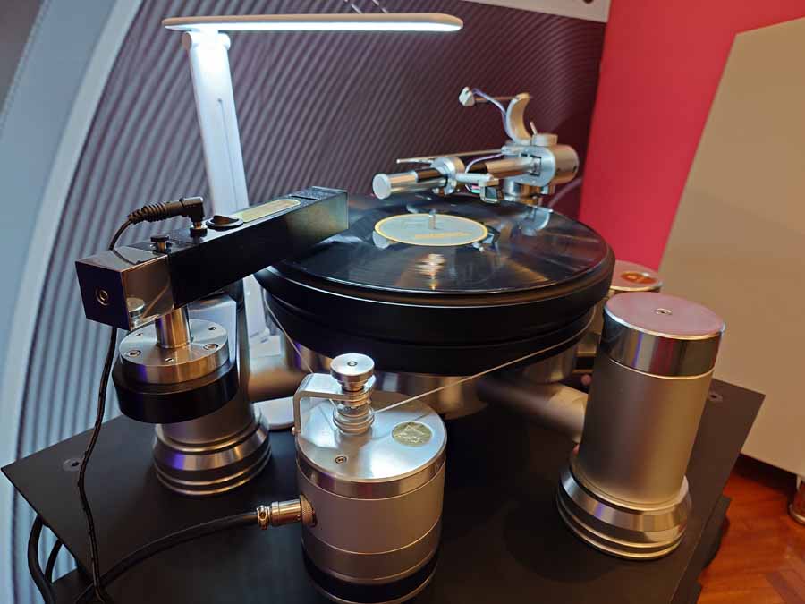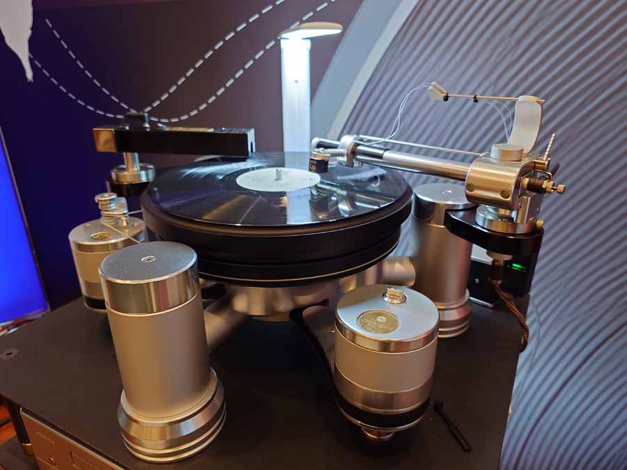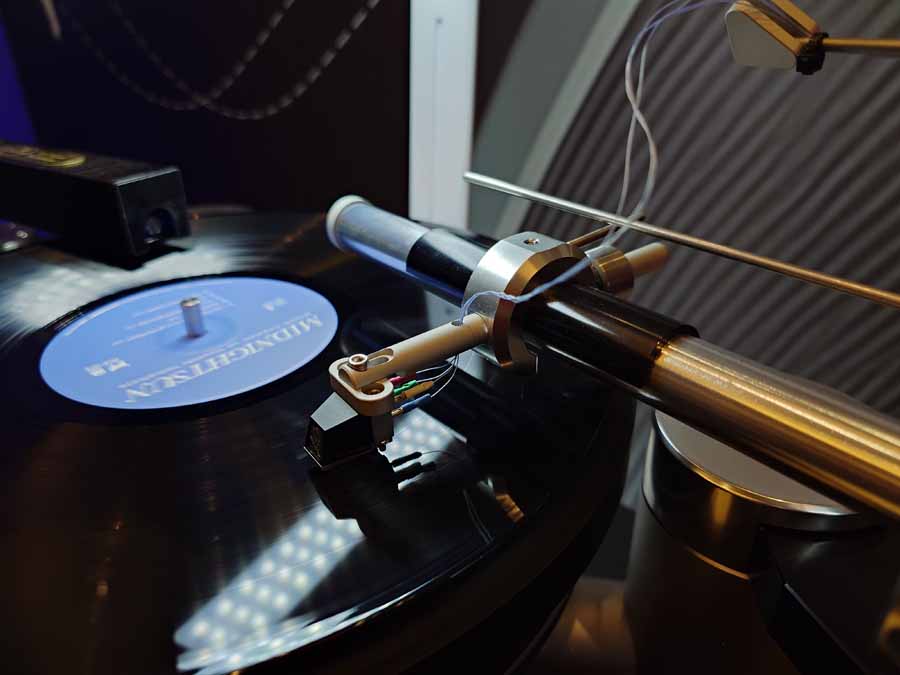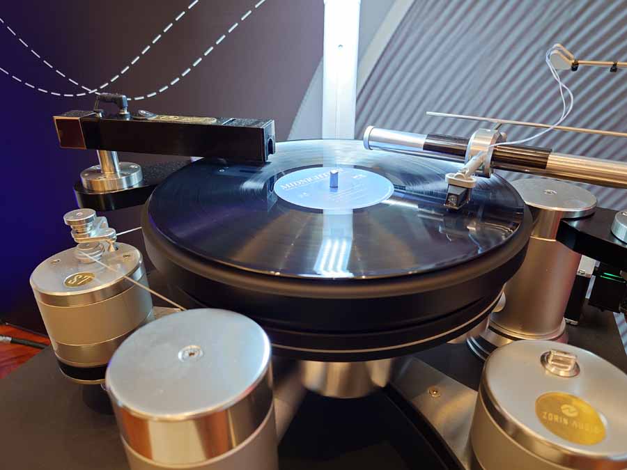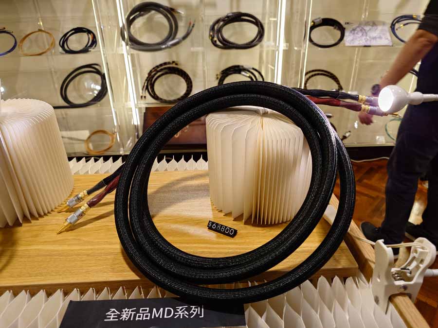 Zorin’s TP‑S7 flagship turntable added a lovely slice of analogue nerdery: a 14 kg, two‑layer aluminium platter with magnetic suspension, separate motor and platter bases, belt drive with a neat mechanical speed selector, and the delightfully over‑engineered M.R. Ionic air‑bearing linear‑tracking tonearm with a Benz LP cartridge and ion generator to kill static at both arm and record surface. The arm’s medical‑grade, low‑noise air system, adjustable pressure, on‑the‑fly VTA and stainless‑steel construction tick pretty much every audiophile box, while the AS‑2 record ioniser is exactly the sort of “because we can” solution only a vinyl obsessive dreams up, neatly mounted on one of the 3 available arm positions and quietly scrubbing away static. All of it was tied together with DC Cable’s new MD series using SUP‑OCC single‑crystal copper, so even the bits you couldn’t see were very much part of the story.