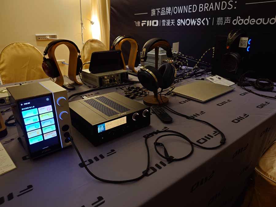 Fiio’s room was pure candyland for HeadFi fans, with tables full of amps, DACs, and headphones just begging for a quick plug-in. The highlight was the new S15, FiiO’s first full-size all-in-one digital front end: an Android-based streamer/DAC/pre with a big colour screen, HDMI/ARC, balanced XLR outputs, and enough I/O to slot into anything from a desktop rig to a full living room system.