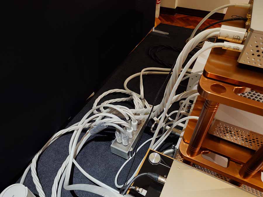 MPS used the show to quietly roll out a whole new power ecosystem, from serious cables to full‑blown distribution and a rather hardcore fuse box. The new F‑360 power cable is a very chunky 6 AWG design using 6N OCC copper in a 14 mm conductor bundle inside a 20 mm jacket, built with same‑direction looping to keep current flow as linear as possible. Alongside it sat the new MPSOURCE power blocks in three variants – GT‑800, GT‑1000 and GT‑3000 – whose tokamak‑inspired magnetic layout, mirror‑image wiring, all‑live‑phase routing and rhodium‑plated outlets aim to scrub noise and spikes without series filters, while full‑aluminium chassis, multiple isolated lines and red‑copper bus bars keep impedance and crosstalk down. To finish things off, the GT-333 fusebox is a high-quality mains entry point with five separate runs and a Siemens no-fuse master breaker.