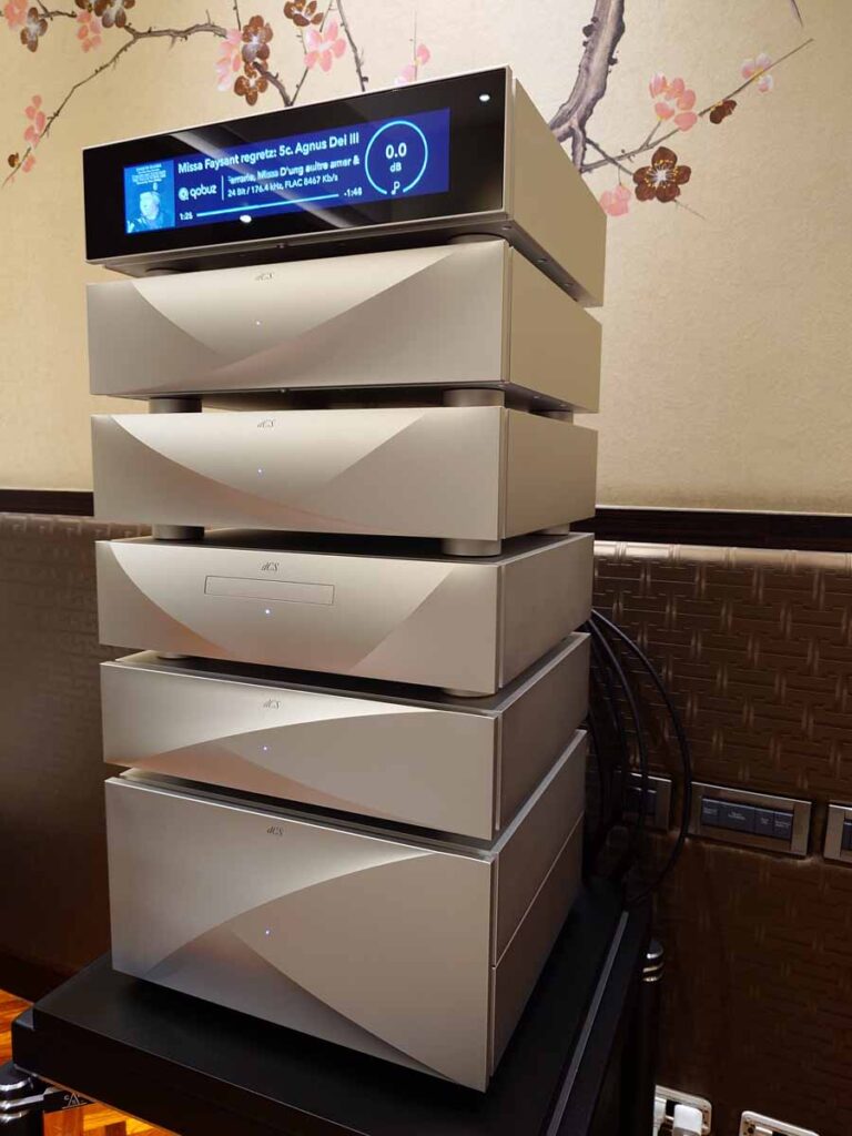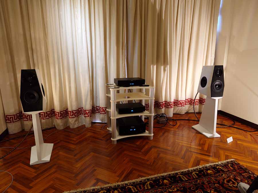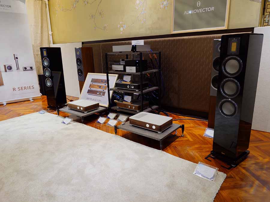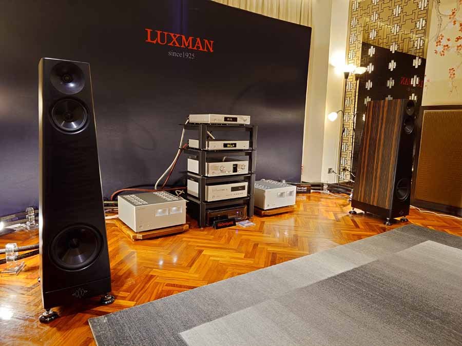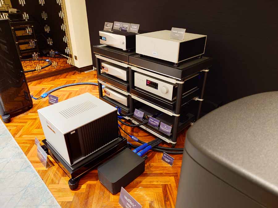 Taifu Audio was like a very civilised boxing ring, with two heavyweight systems facing each other and taking turns every half hour. The full T+A stack was on one side. It had a PS 3000 HV power supply, an A 3000 HV power amp and a PSD 3100 HV pre/streamer that drove the tall Solitaire S 530 floorstanders. Things got even more powerful on the other side with Rockport’s Lyra loudspeakers powered by Constellation Virgo II preamplifier and Centaur Mono II amplifiers, a Totaldac d1 DAC, and the full Innuos flagship digital front end: Nazare server, Statement transport, and PhoenixNET switch. The sound was well laid out and enjoyable, but you certainly need the room (or better, a hall) to take advantage of it.