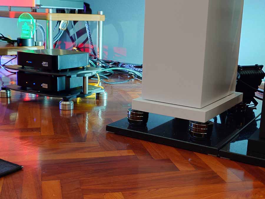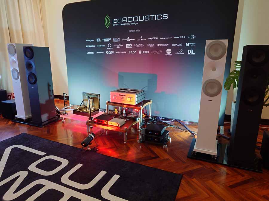 They put IsoAcoustics’ latest Gaia Neo feet firmly in the spotlight. The very popular isolators got some important updates, including an easier way to adjust their height and level it with a rotating collar, simpler installation without confusing lock nuts, and better separation for a clearer, more focused sound. The demo concentrated on flipping between no isolation and Gaia Neo under the Amphion speakers to show the change in grip and clarity – though a direct A/B with the original Gaia would have been fun. Electronics were sensibly matched: a Soulnote A‑3 integrated on amplification duty, a Wattson Madison streamer powered by a Ferrum Hypsos and fed through an ExD network switch, with a JL sub quietly filling in the lowest octave.