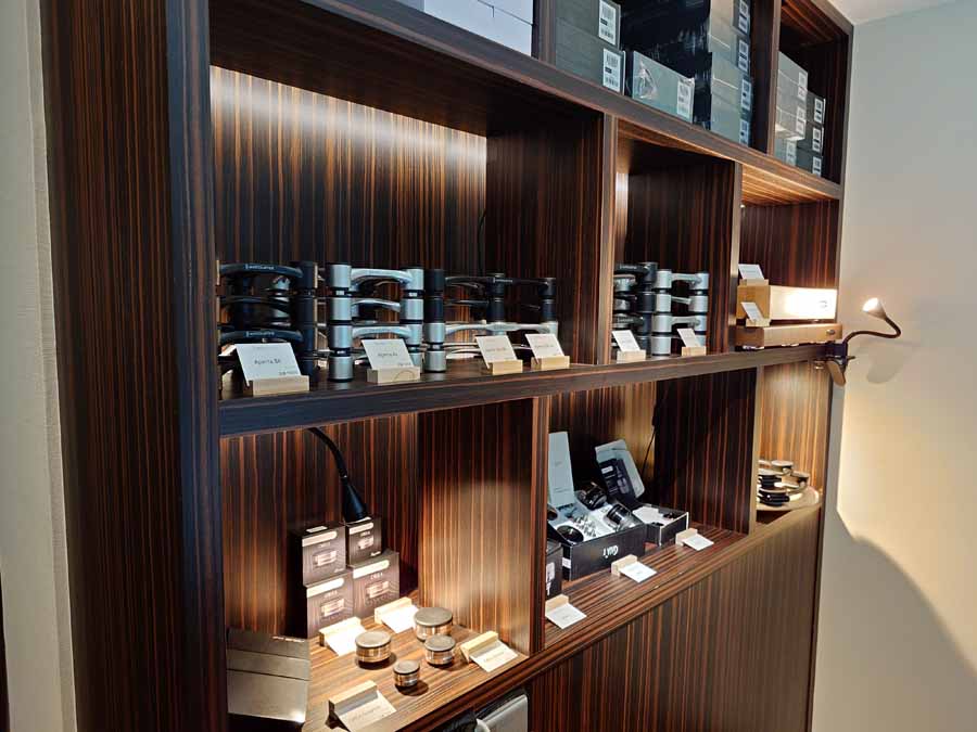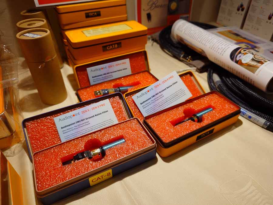 Logic Audio and Audiopoint shared a cosy room for people who like to tweak things. Logic showed off a full chain with a speaker, two amplifiers – providing a sneak peek of their new shoebox-sized amplifier – and power distributors, while Audiopoint took care of the fine-tuning with its Zen X-Pro ground-noise reducers for all types of connections and a selection of their own “special recipe” fuses. They all worked together to create a fun little playground for people who like to push their systems to the limit.