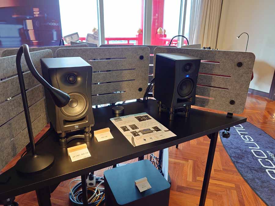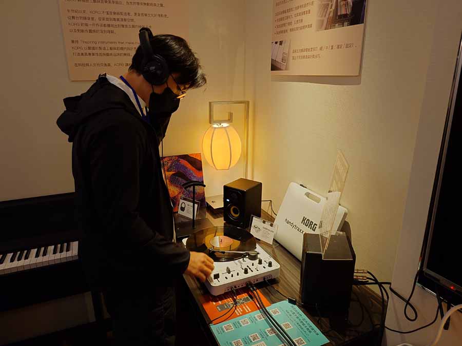 This room wasn’t for “sit back and listen”; it was for “roll up your sleeves and make some noise.” KORG took over the space with musicians and creators in mind. There was a Handytraxx 1bit and play portable turntable-recorder spinning vinyl on one side, a digital piano from the Poetry lined up for a quick play, and a corner full of Fosi Audio desktop amps feeding studio monitors and headphones for laptop-based production. It felt more like a small project studio, which is surprisingly rare at shows. It was delightful to see some younger enthusiasts jumping in to try some mixing.