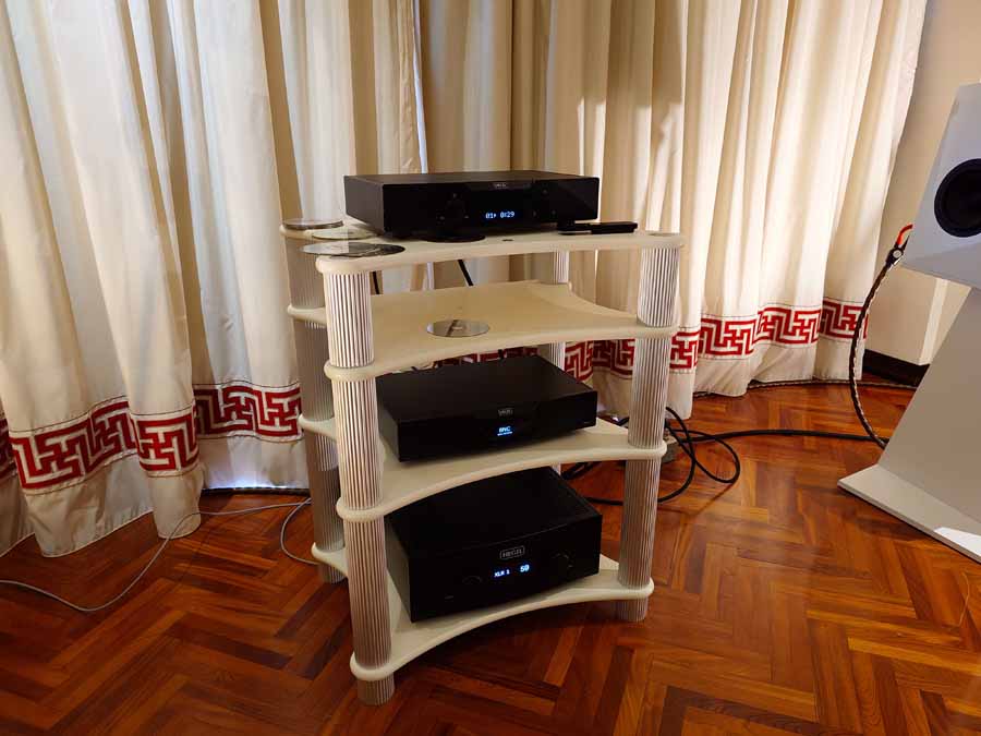 The main system was built around DM D+M’s Prince Moses floorstanders, a 3‑way, 4‑driver design using Scan‑Speak Ellipticor mid and treble units with twin Revelator woofers, plus serious internal damping and OCC single‑core wiring co‑developed with DC Cable. With 89 dB sensitivity, a 4‑ohm load and extension down into the high‑20 Hz region, these “small” towers are anything but shy, and they clearly like to be driven. Arriba’s Titan 100PP integrated amplifier handled that part with ease: a 54 kg push‑pull flagship running four KT150s in AB ultra‑linear for 100 W per channel, packing 25 kg of transformers on board, fully balanced input, ALPS volume control and a 10 Hz–40 kHz bandwidth that makes “built like a tank” sound almost modest.