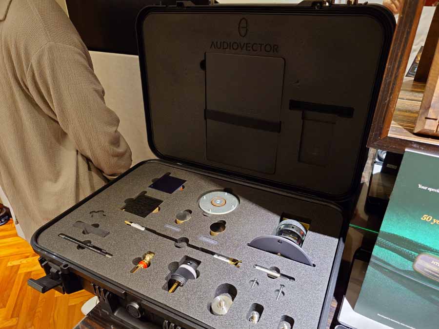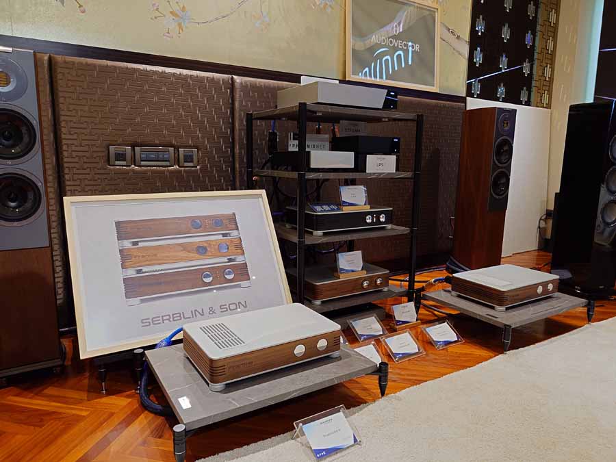 The speaker here was the Audiovector’s QR-5 SEs, tall Scandinavian floorstanders with AMT ribbon tweeters and “Pure Piston” mid/bass drivers. They made the room sound big, open, and well-textured without ever getting harsh. They were powered by Serblin & Son’s Frankie electronics in a pre/power mono setup. This kit combines Italian wood and metal styles with features like a 127-step relay-switched analogue volume control for very small changes in volume. An Innuos streaming setup took care of the front end, so the whole chain from the server to the speakers felt modern, smooth, and very focused on getting as much low-level detail and emotion out of files as the room would allow.