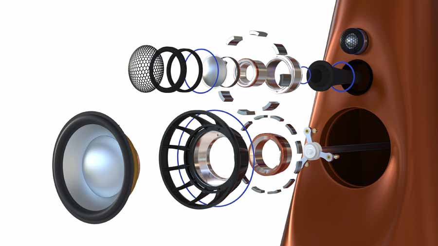 A notable technical update across the Vivid Audio Giya Cu range is the use of copper-capped upper and lower midrange drivers. This approach, first implemented in the company’s Moya M1 flagship model, aims to reduce both second and third harmonic distortion. Vivid Audio states that the inclusion of copper caps in its in-house drivers lowers distortion by up to 20 dB for the third harmonic, potentially improving midrange clarity and bass definition.