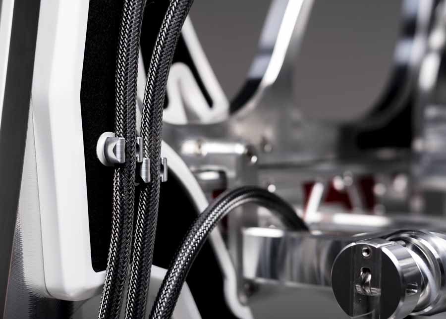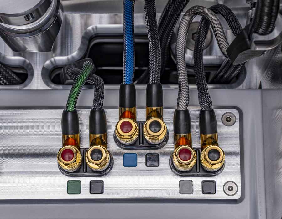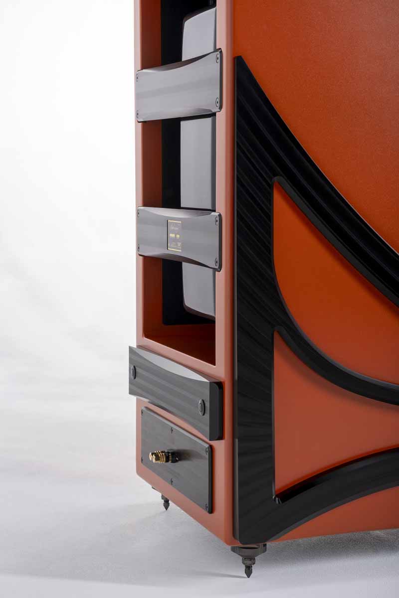 Additional hardware elements include custom binding posts, integrated cable management, and accessible resistor mounts. The speaker also incorporates Wilson Audio’s Acoustic Diodes for vibration control at the floor interface.