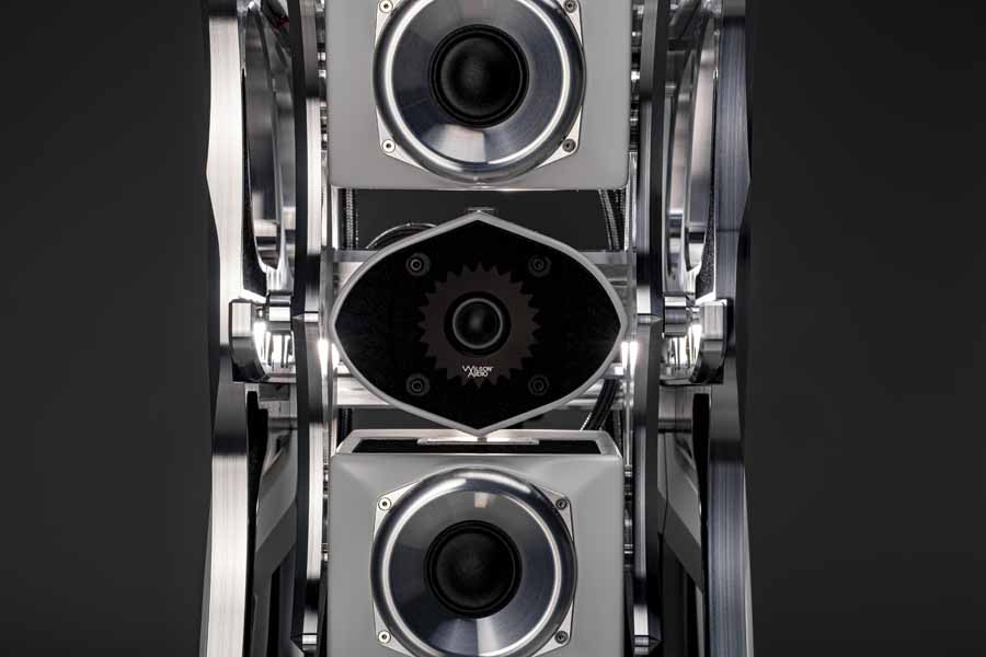 The front-firing tweeter uses Wilson Audio’s Convergent Synergy Laser Sintered (CSLS) technology, with a revised rear wave chamber intended to reduce internal reflections and improve energy dissipation. The 2-inch midrange drivers are designed to bridge the transition between high and mid frequencies, while the 7-inch PentaMag midrange units employ a five-magnet AlNiCo structure derived from earlier designs.